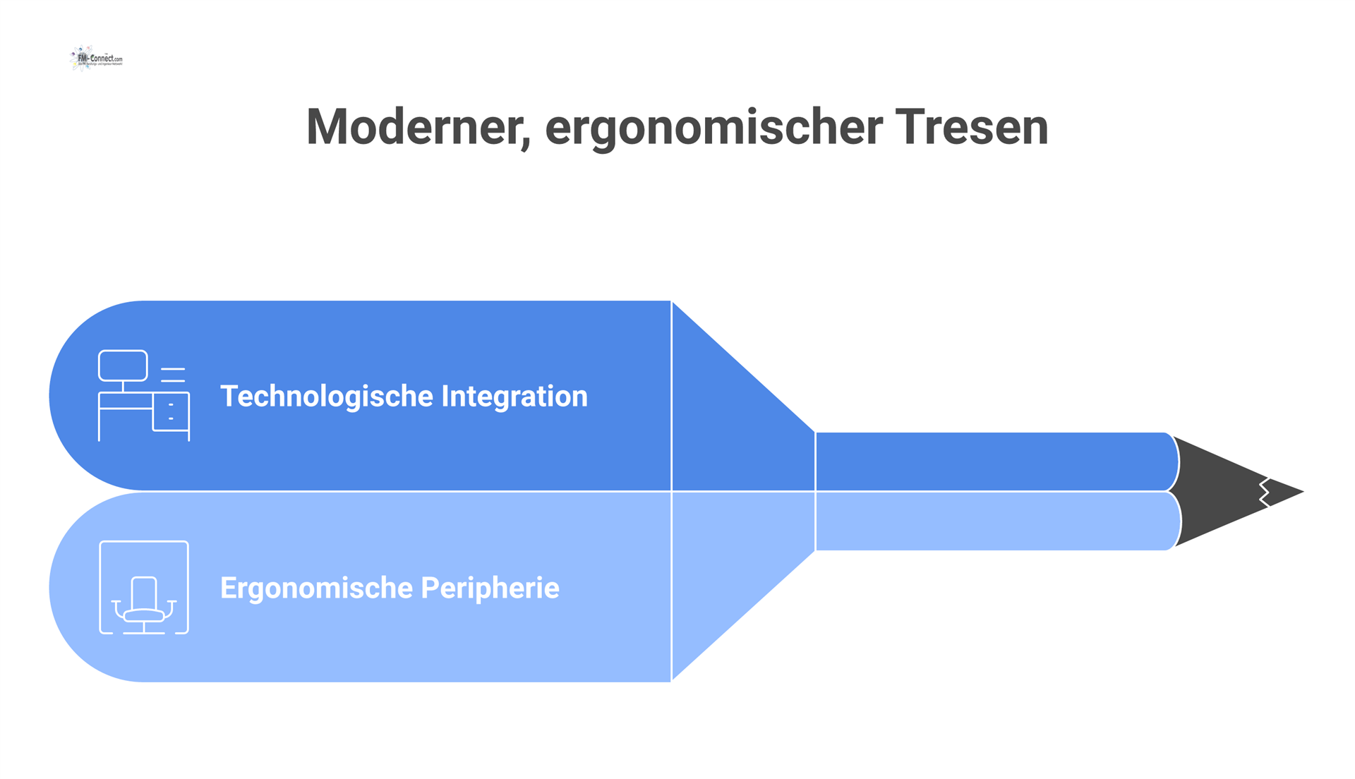 Moderne ergonomische Tresen sind oft mit einer Vielzahl von technologischen Funktionen ausgestattet, die den Arbeitsablauf unterstützen und den Arbeitsplatz organisieren: